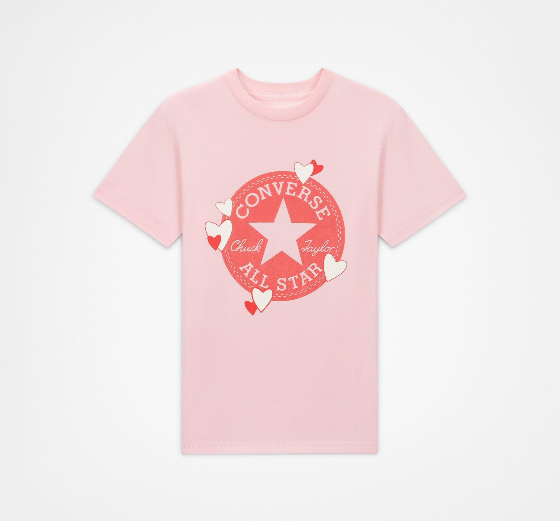 Tričko, které snadno padne, dodá vašemu outfitu na rande nový rozměr. Velká nášivka s logem Chuck, která je pokrytá výraznými srdíčky, vás dostane do víru lásky. Klasický kulatý výstřih navíc znamená, že tričko můžete nosit samostatně nebo ho zkombinovat s oblíbeným svetrem.