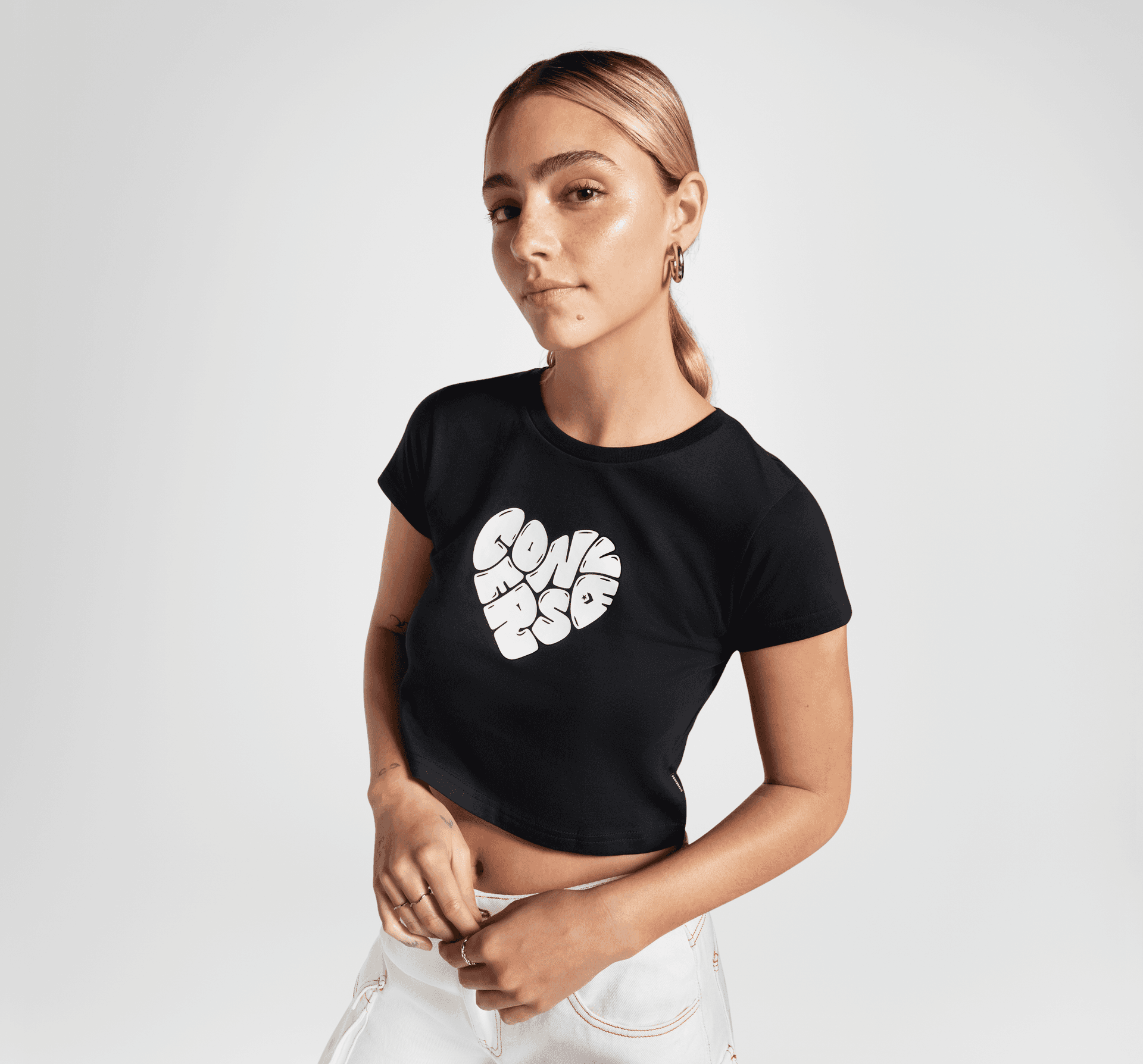 Ukažte svou lásku ke značce Converse, přímo u srdce. Pohodlné bavlněné tričko s potiskem ve tvaru srdíček v přiléhavém střihu je pro všechny milovníky značky Chuck Taylor.