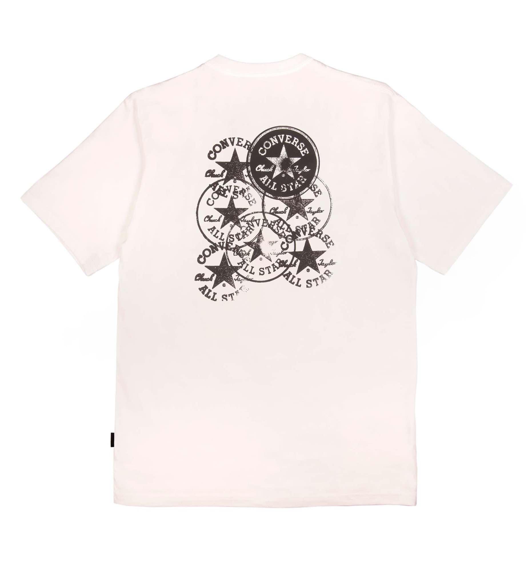 Toto oblíbené tričko standardního střihu mají gumový potisk se vzorem kotníkové hvězdy, kterou ručně vyrazil náš návrhář. Nostalgické tričko s krátkými rukávy a naším logem je vyrobeno z měkkého, bavlněného žerzeje.