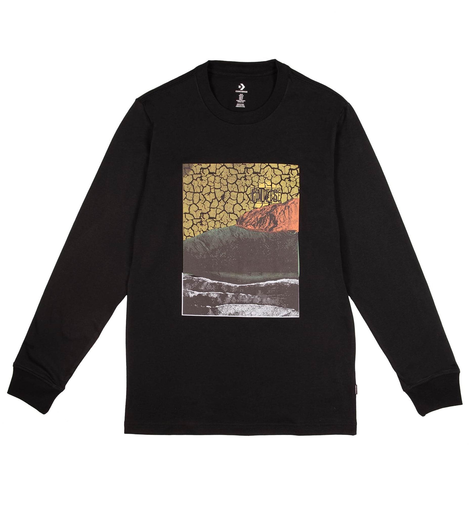 Mix terénů, textur a barev kombinuje fotorealistické snímky krajiny s abstraktním krakelovaným potiskem, díky čemuž vynikne hybridní venkovní svět. Standardní střih a měkký bavlněný žerzej drží tento styl střetu s přírodou při zemi.