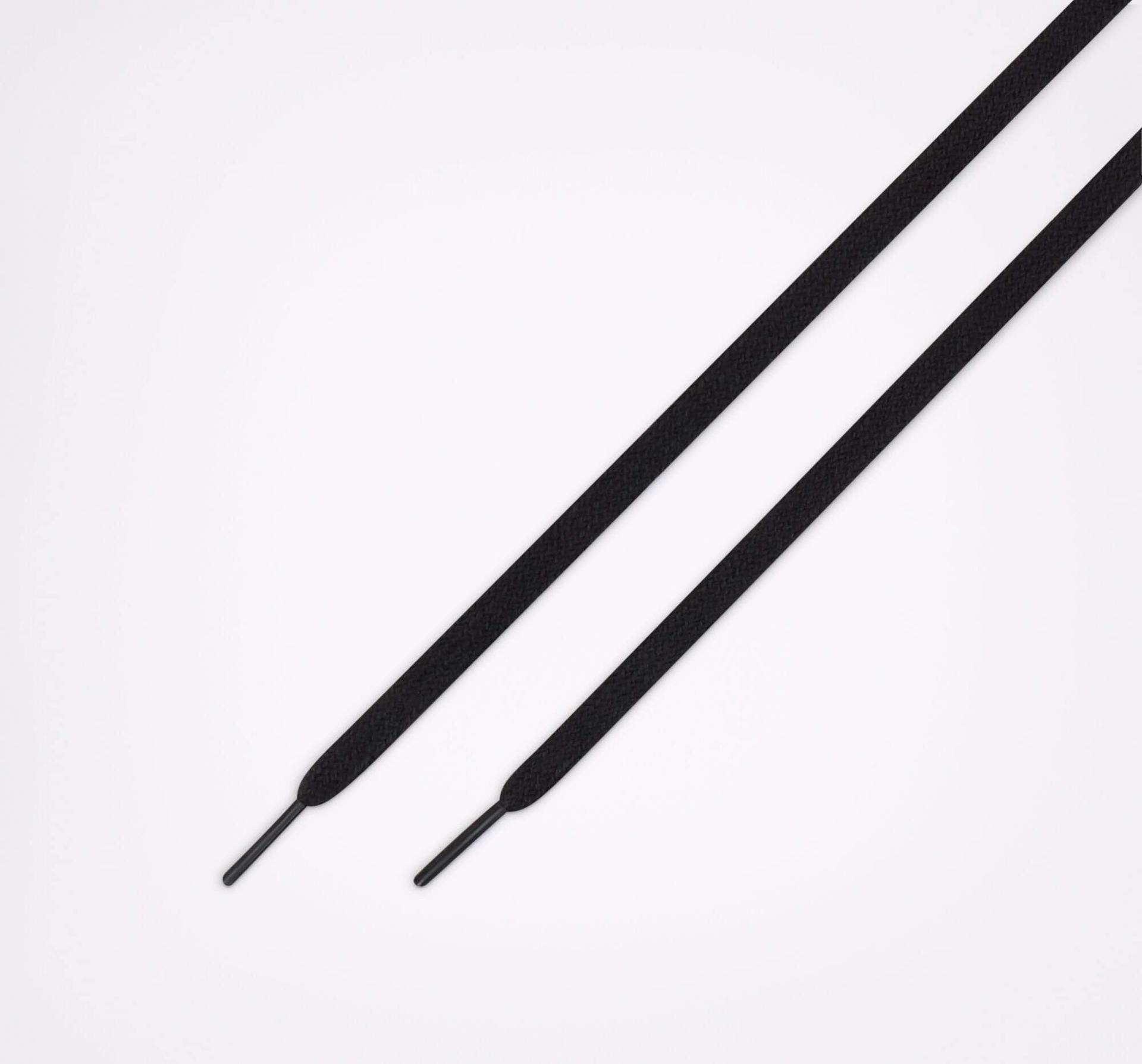Ploché bavlněné tkaničky, speciálně navržené pro nízké boty. Šněrování podle vašich představ s prvotřídními černými tkaničkami.