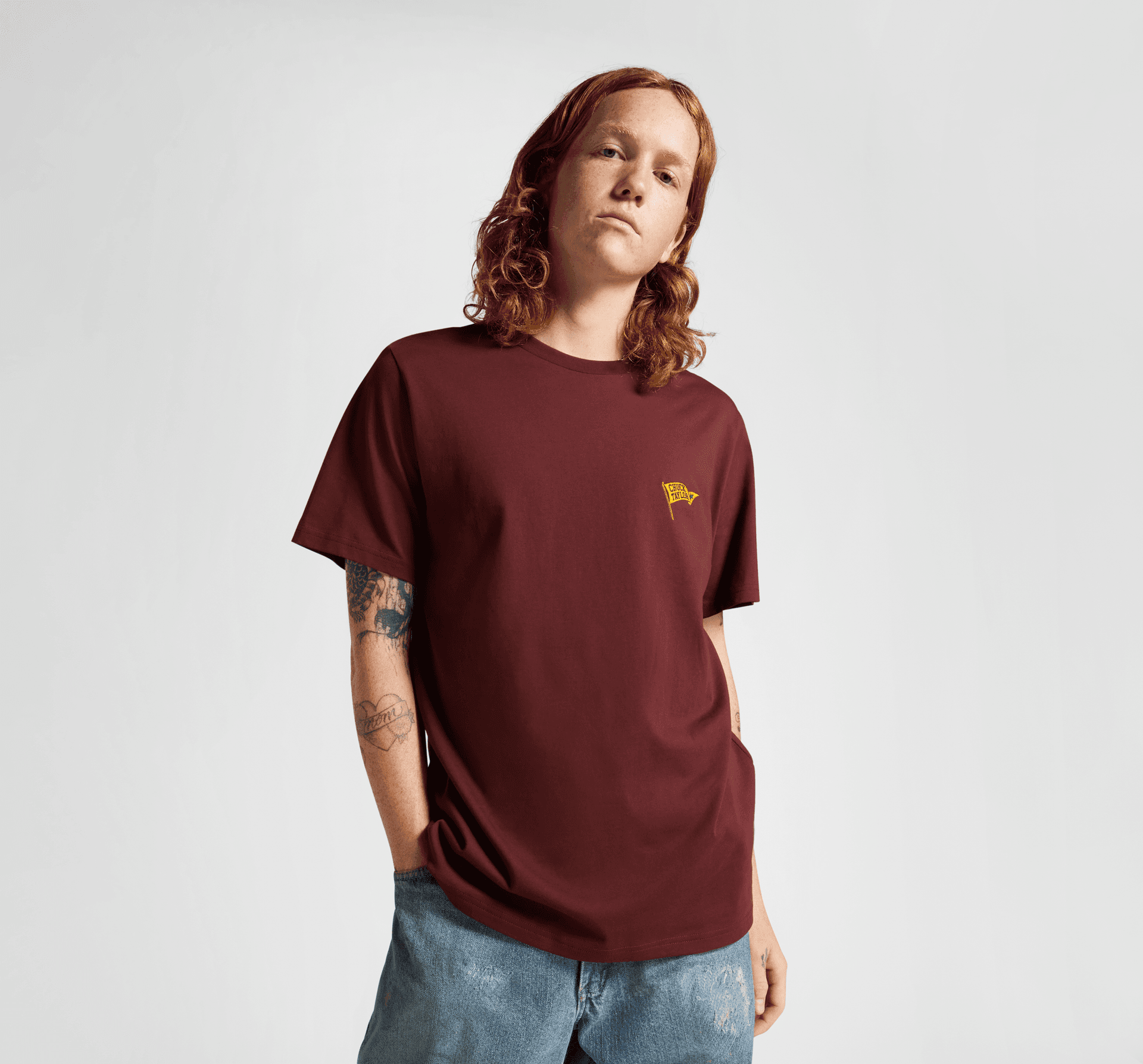 Na oblíbené tričko klasického střihu jsme přidali nenápadné prvky značky jako nepatrné logo s vlaječkou, takže můžete nenápadně ukázat, že jste příznivcem značky Chuck Taylor.