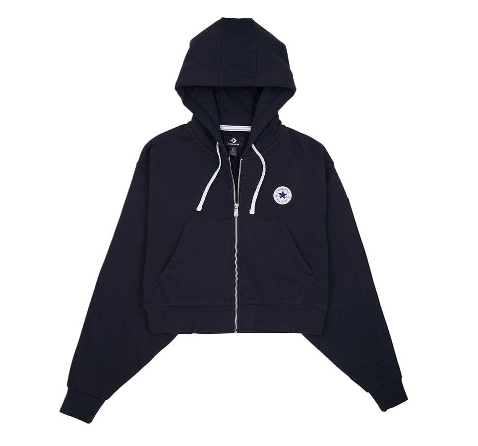 Mikina s kapucí na zip v mírně zkráceném střihu