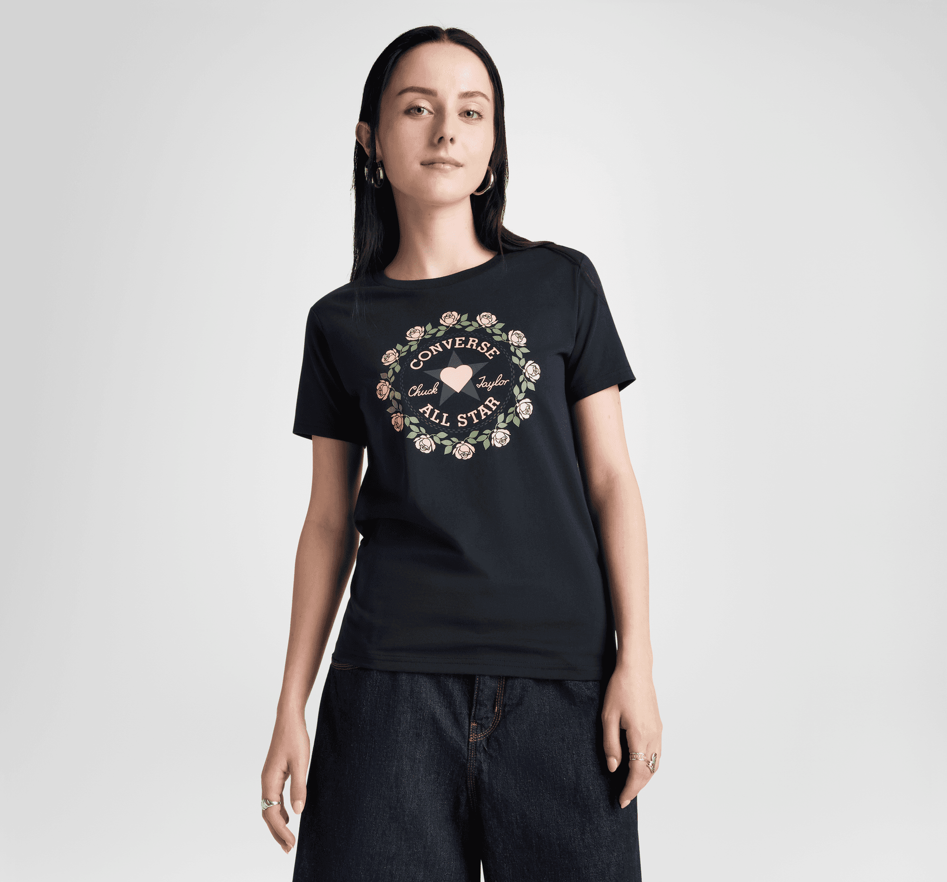 Romantický potisk nášivky Chuck Taylor s růžemi a srdíčky