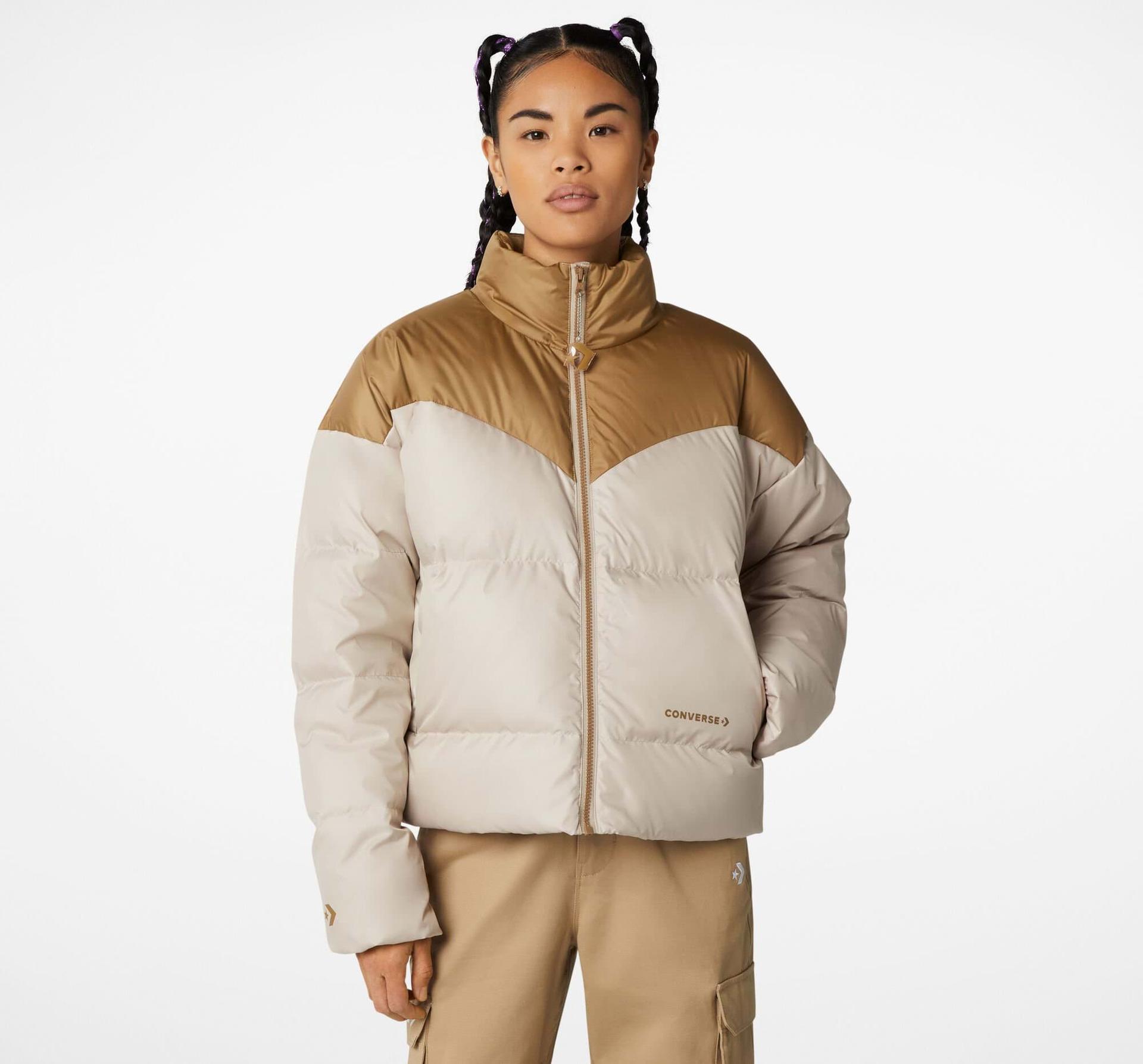 Krátká péřová bunda se zapínáním, která je navržená tak, abyste nemuseli slevit ze svého stylu, kombinuje prvky prošívané bundy se 150 gramy husího peří, které vás zahřeje. Neobvyklé prvky, jako barvy a odnímatelná péřová kapuce, pozvednou váš outfit bez ohledu na počasí.