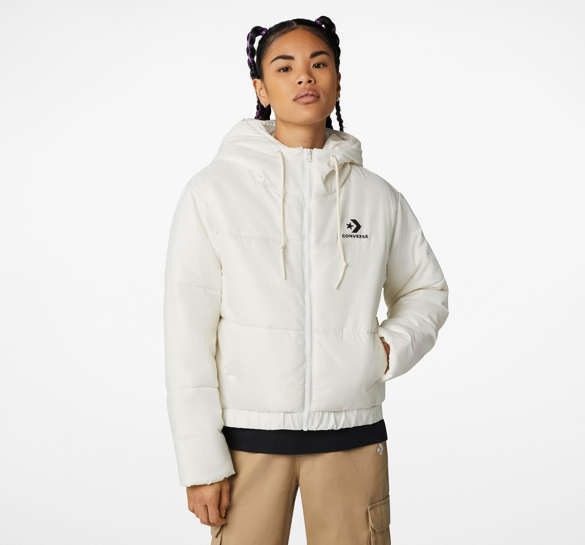 Bunda na každý den, ale lepší. Prošívané provedení a výstelka z recyklovaného materiálu vás udrží v teple aniž byste museli obětovat svůj styl. Elastické náplety a obruba udrží teplo uvnitř. Nezaměnitelné logo s hvězdou a ševronem na hrudi přináší styl All Star do vašeho zimního šatníku.