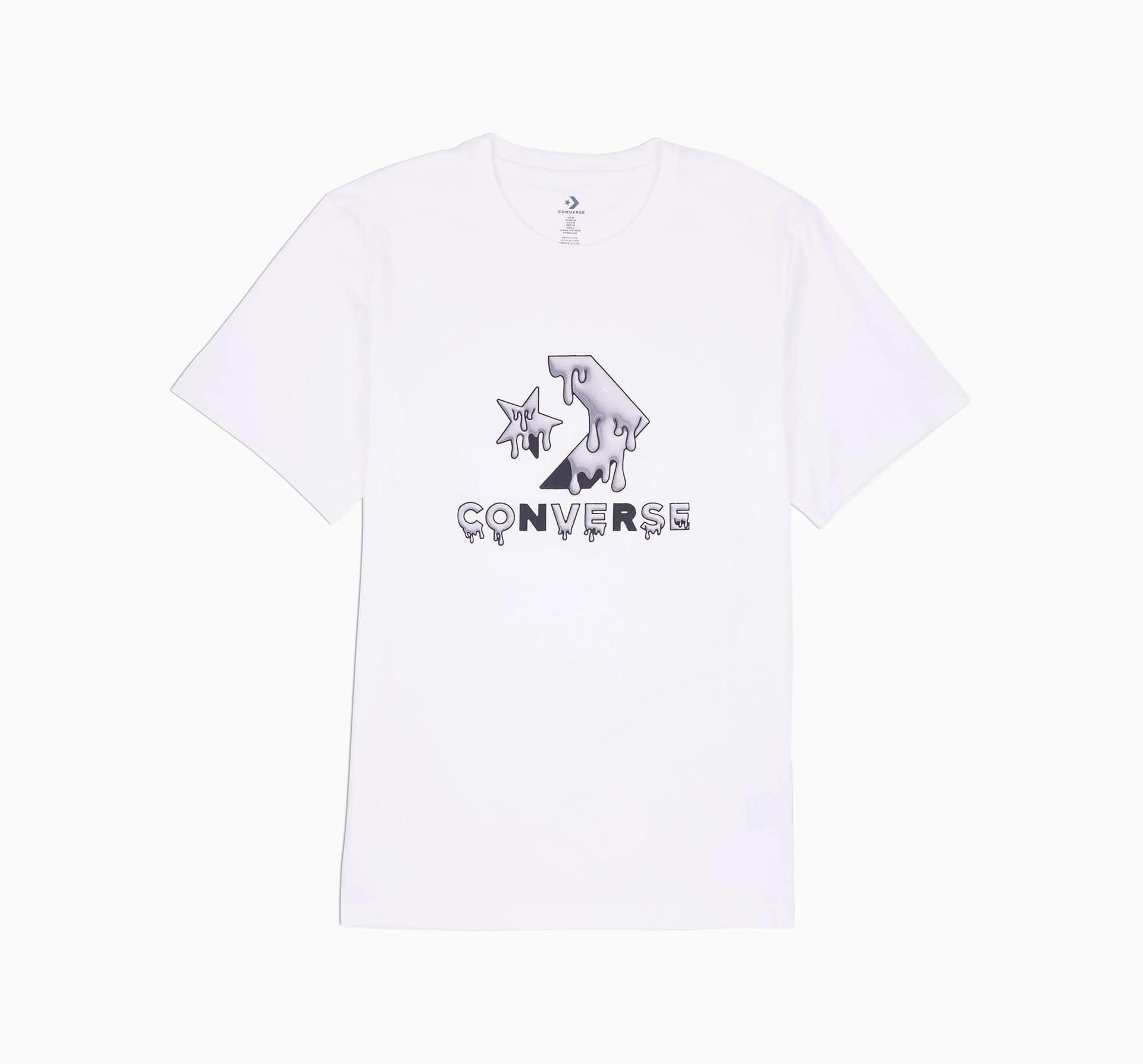 Potisk loga Star Chevron ve skoro kapalné podobě na barevném tričku
