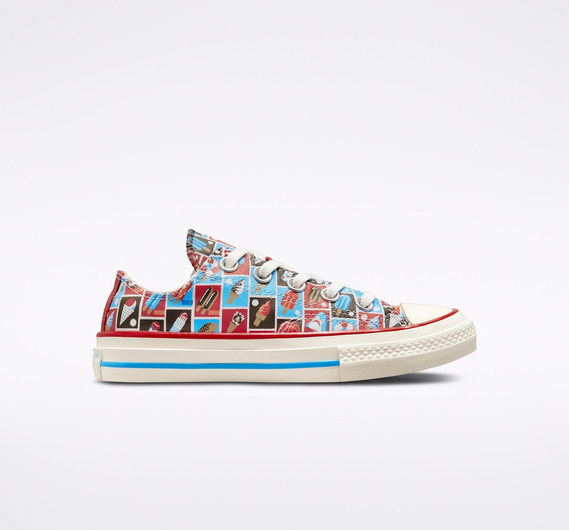 Chuck 70 je postavena na původním designu ze 70. let, s prémiovými materiály a mimořádným řemeslným zpracováním, jako je odolný svršek z 12 uncového plátna a lesklá boční strana z egretové gumy. Módní stálice předělaná pro děti s potiskem mražených pochoutek inspirovaným vintage, které můžete najít na klasických zmrzlinových dodávkách. Změkčené stehy a podšívky plus SmartFOAM stélka dodávají extra tlumení tam, kde je to důležité. Lahoda.