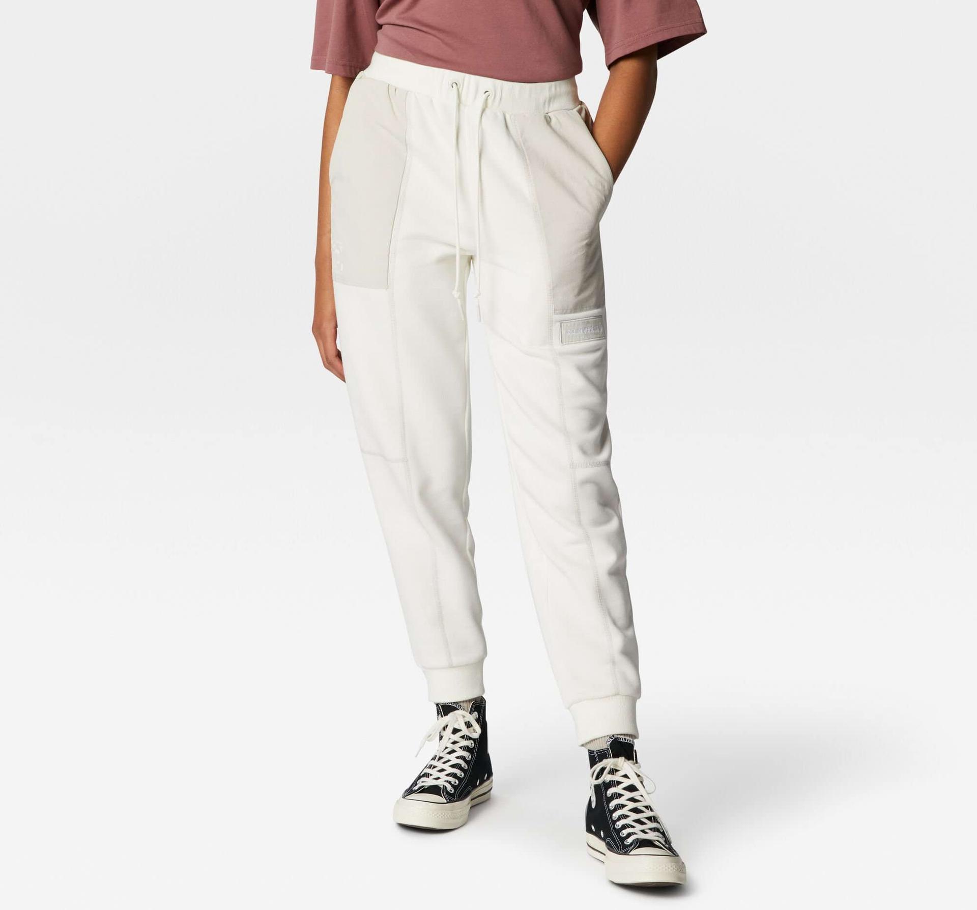 Tyhle praktické tepláky s velkými kapsami vznikli kombinací pouliční stylus pohodlným domácím oblečením. Jsou vyrobeny z velmi měkkého flísu a jsou ideálním řešením na chladné dny, aniž byste museli slevit ze svého stylu. Praktické detaily, jako jsou velké kapsy a stahovací šňůrka propojují módu s praktičností.