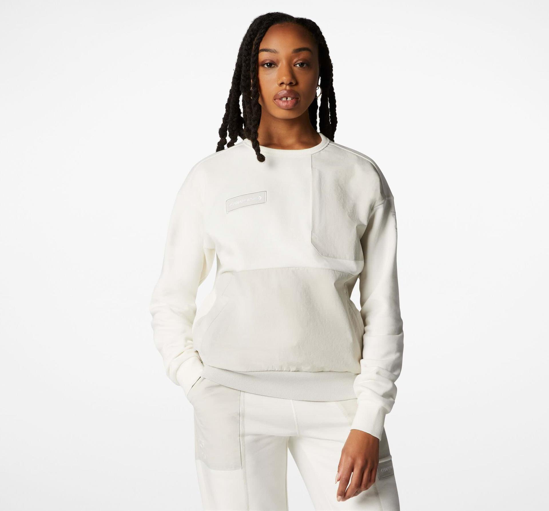 Vrstvěte stylově s novou praktickou mikinou s kulatým výstřihem. Mikina je ušitá v kombinaci středně silného flísu a manšestru, abyste se v pohodlí postavili chladnému počasí. Díky snadno přístupným kapsám na rukávech a prostorné náprsní kapse na zip je praktická.