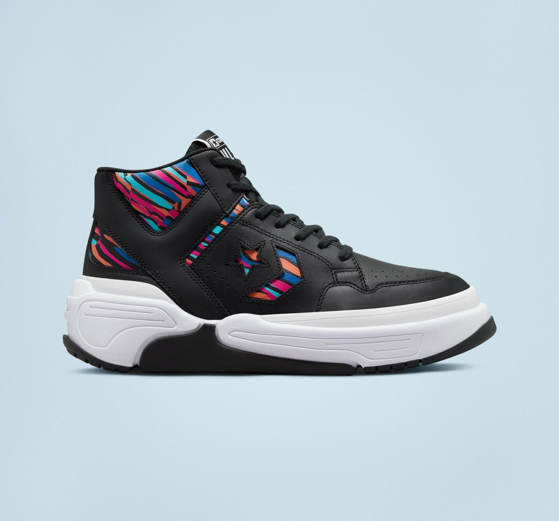 Mid-top shoe with striped pattern hits